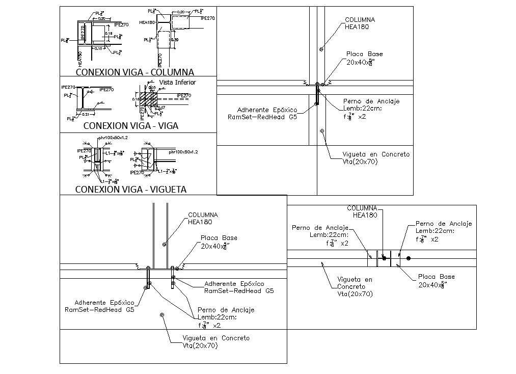 Column and beam section detail dwg file, including wall section bolt nut detail, naming detail, dimension detail, etc.
