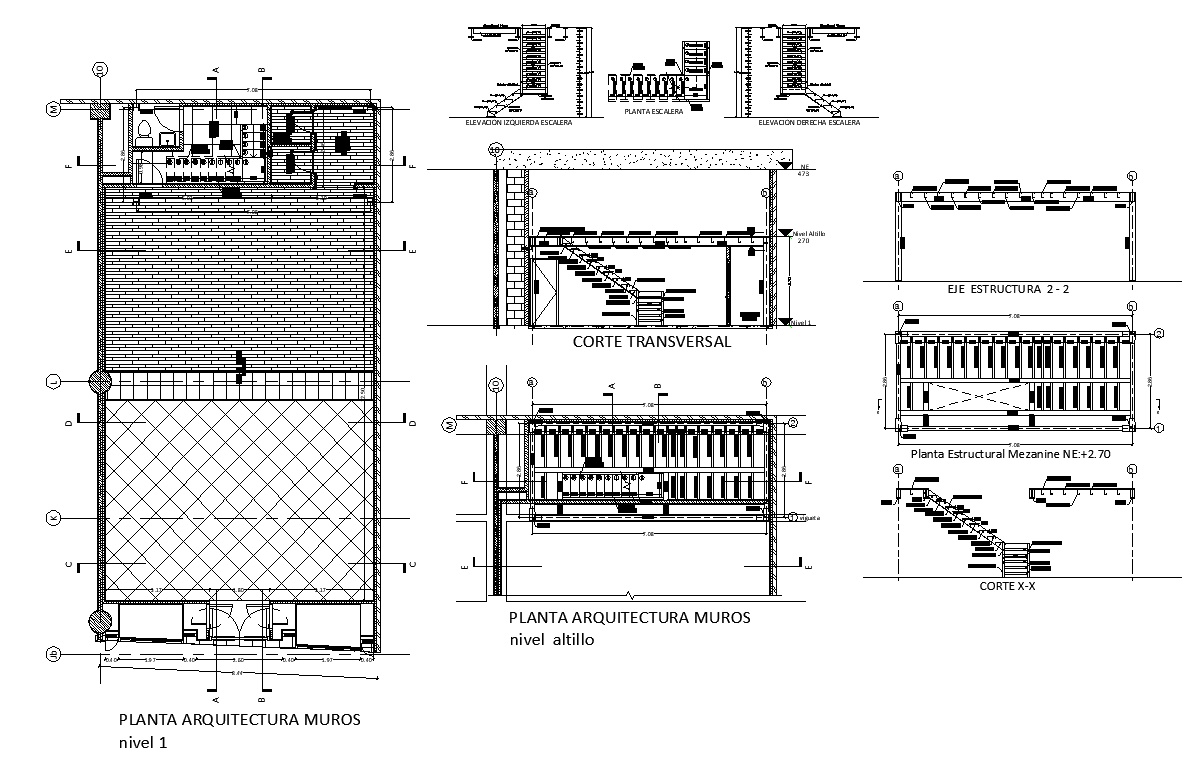 House architect plan design detail dwg file, with stair plan and section plan detail, stair numbering detail, center line plan detail, dimension detail, naming detail, brick wall detail, etc.