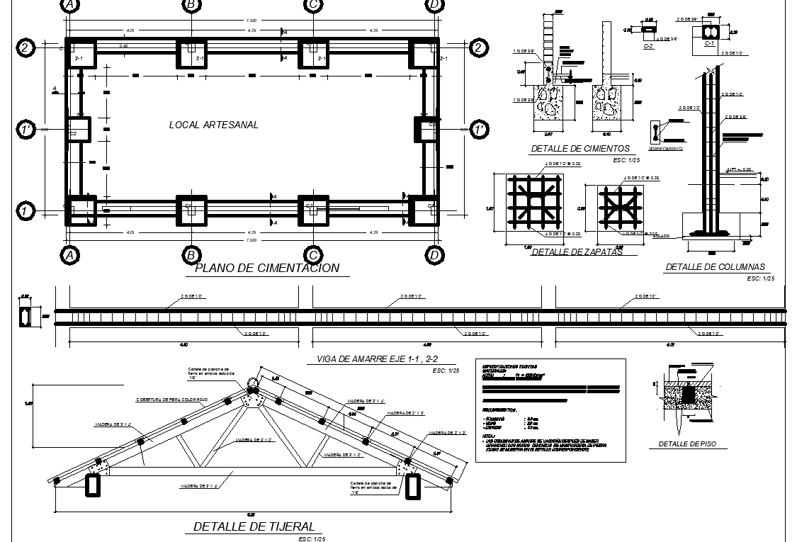 Construction building plan, elevation and section detail, with beam section detail dwg file, foundation plan and section detail, column detail, roof truss section detail, reinforcement detail, dimension detail, naming detail, etc.