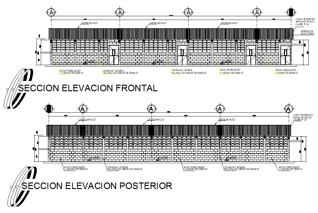 Sectional detail and elevation of a school dwg file