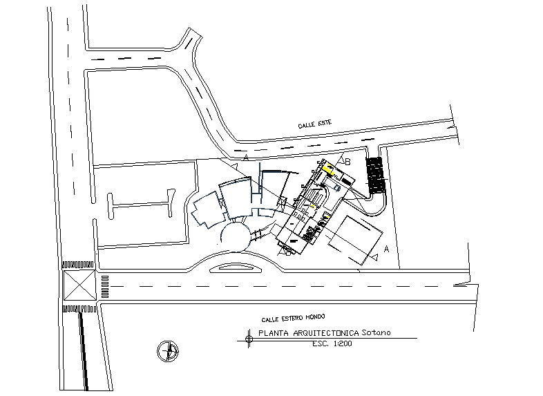 Library project plan detail dwg file, with ground floor plan detail, section line plan detail, road line detail, stair detail, scale 1:200 detail, etc.