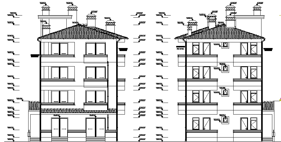 Front elevation of a apartment building dwg file
