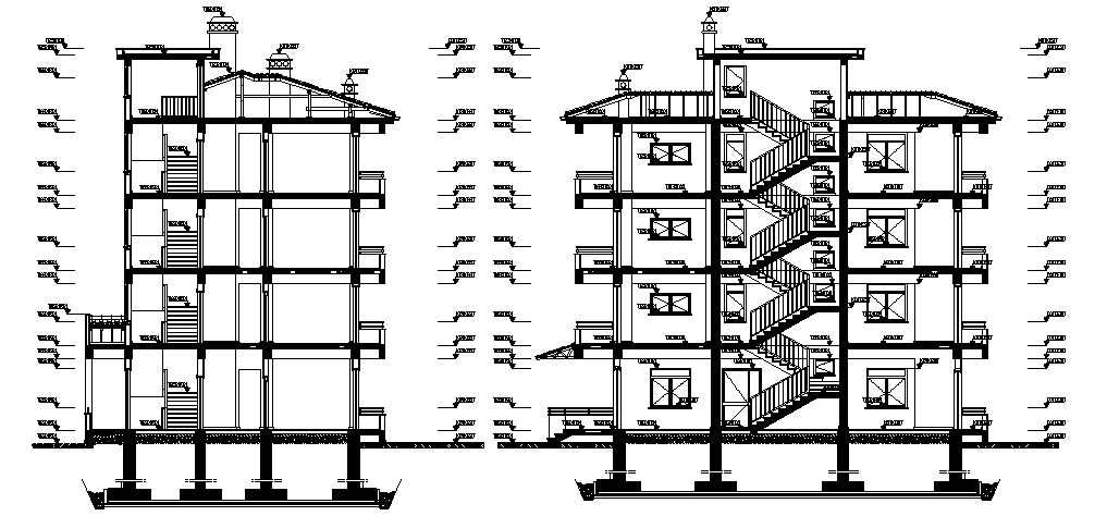 Staircase design and elevation dwg file, here complete staircase view of a apartment is shown, side elevation is also shown