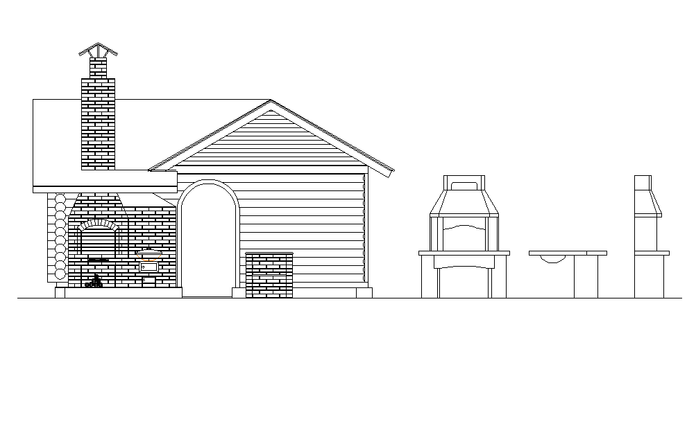 Barbecue kitchen elevation dwg file, this file contains barbecue kitchen made of bricks, complete detailing is shown in auto cad format