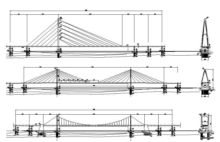 Cable stayed bridges elevation dwg file