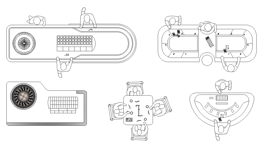 Casino area plan dwg file, here there is plan of a casino table with human figure detailing, play area , club etc