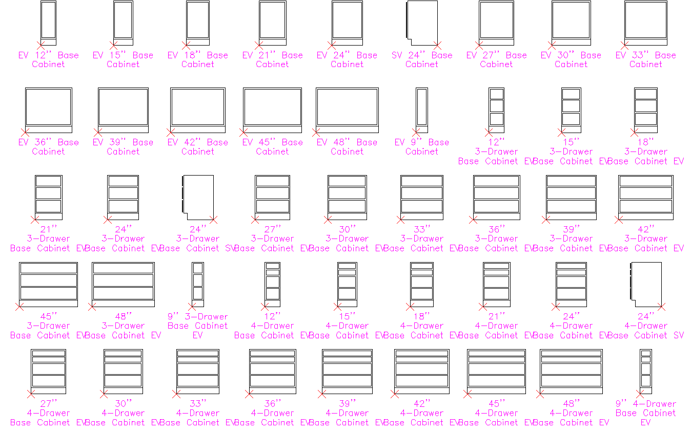 Kitchen Autocad Blocks DWG Set with Base and Drawer Cabinet Layouts