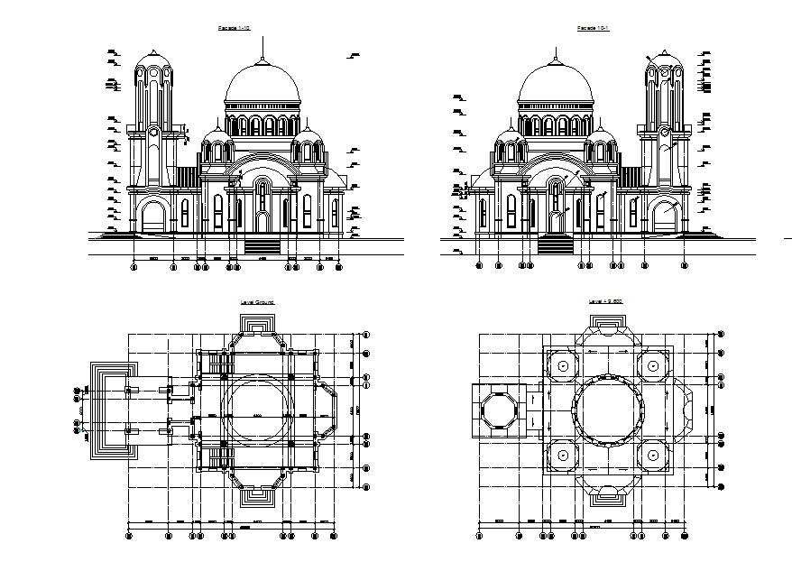 Church elevation and plan dwg file, here there is front elevation of church, big church, plan details is also shown
