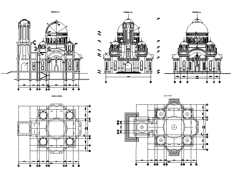 Church elevation and plan dwg file, here there is front elevation of church, big church, plan details is also shown