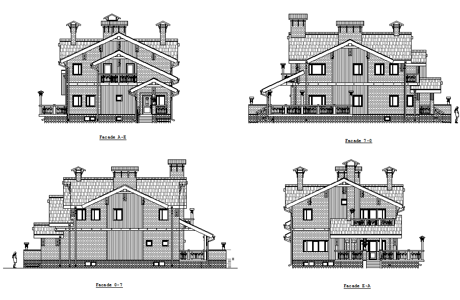 Classic villa elevation dwg file