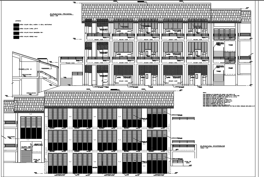 Front elevation detail and lateral elevation college plan detail dwg file