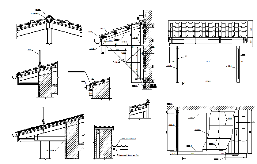Details of roof tiles and terracota tiles , here there is sectional detail of roof tiles, placing of roof tiles is shown, front elevation and other sectional details are shown