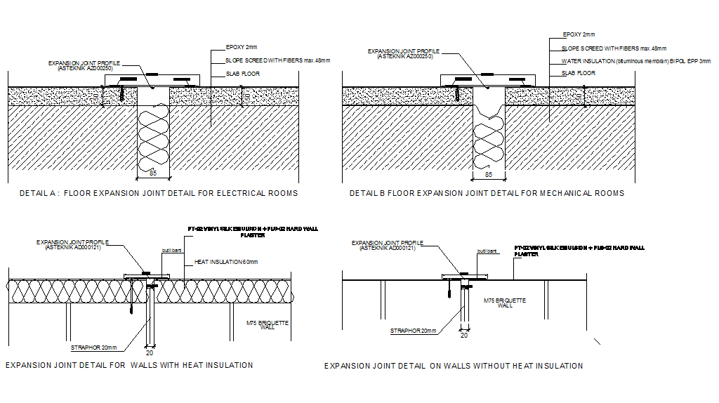Expansion joint detail section plan dwg file, all details of joint for heat insulation is shown, section plan with concrete details