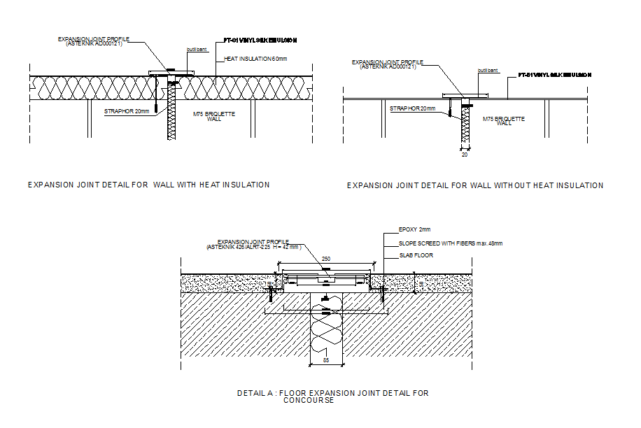 Expansion joint detail for concourse dwg file, section plan of joint detail, constrcution detail project