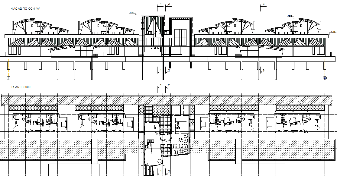 Modern architecture concept villa elevation dwg file, same elevation design villa and top view plan detail in auto cad format