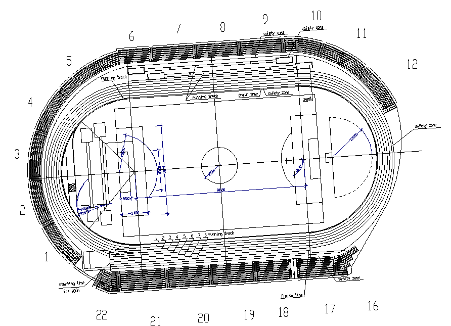 Stadium top view plan dwg file, modern construction architecture detail, spacious concept in auto cad format