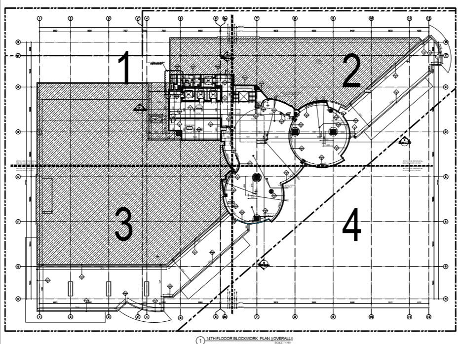 Commercial building floor plan with all detail detail of different zone with measurements,,block work plan centre line drawings