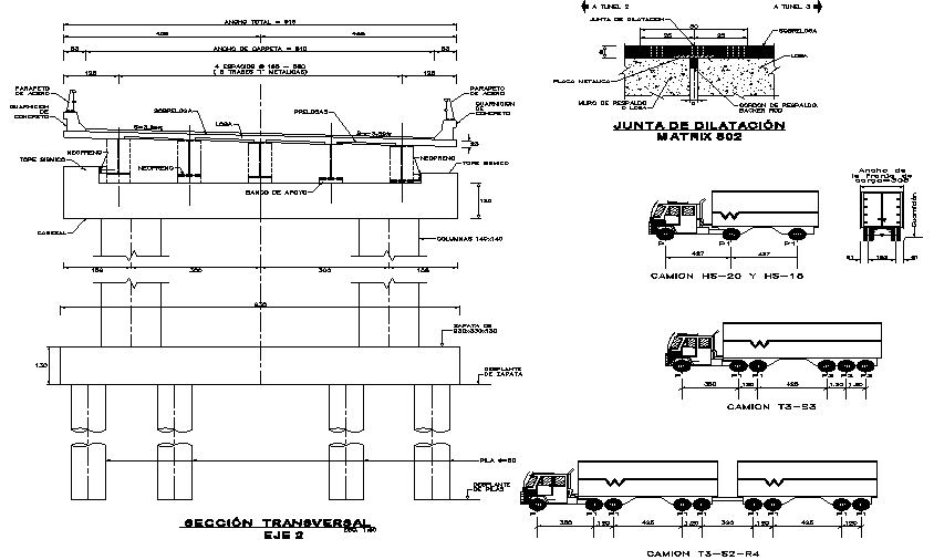 Bridge plan and section plan detail dwg file, including section line detail, dimension detail, naming detail, etc.