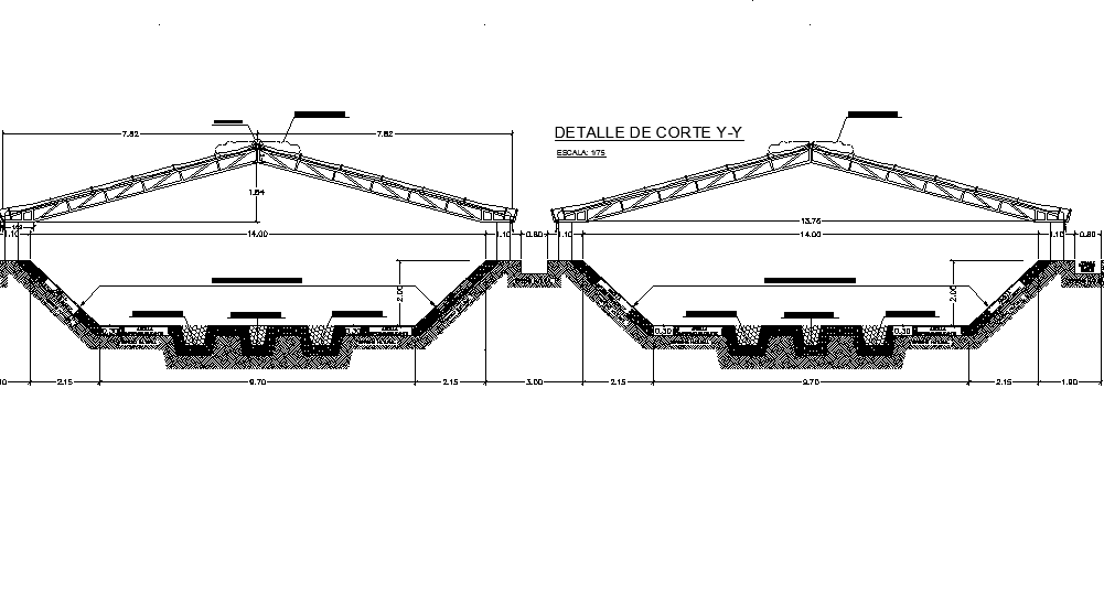 Sanitary landfill dwg file, sectional detail of a area and building, with word detailing