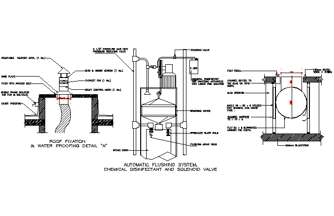 Automatic flushing system, chemical disinfectant, and solenoid valve detail dwg file