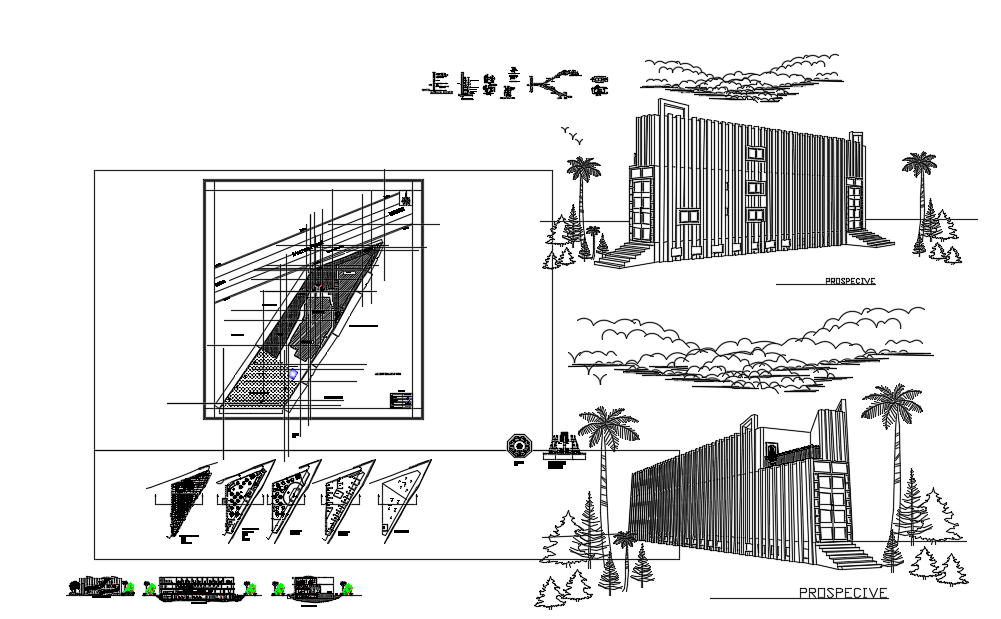 Educational institutional building layout plan dwg file.The architecture Layout plan, landscaping design, section plan and elevation design of the Educational institutional building.