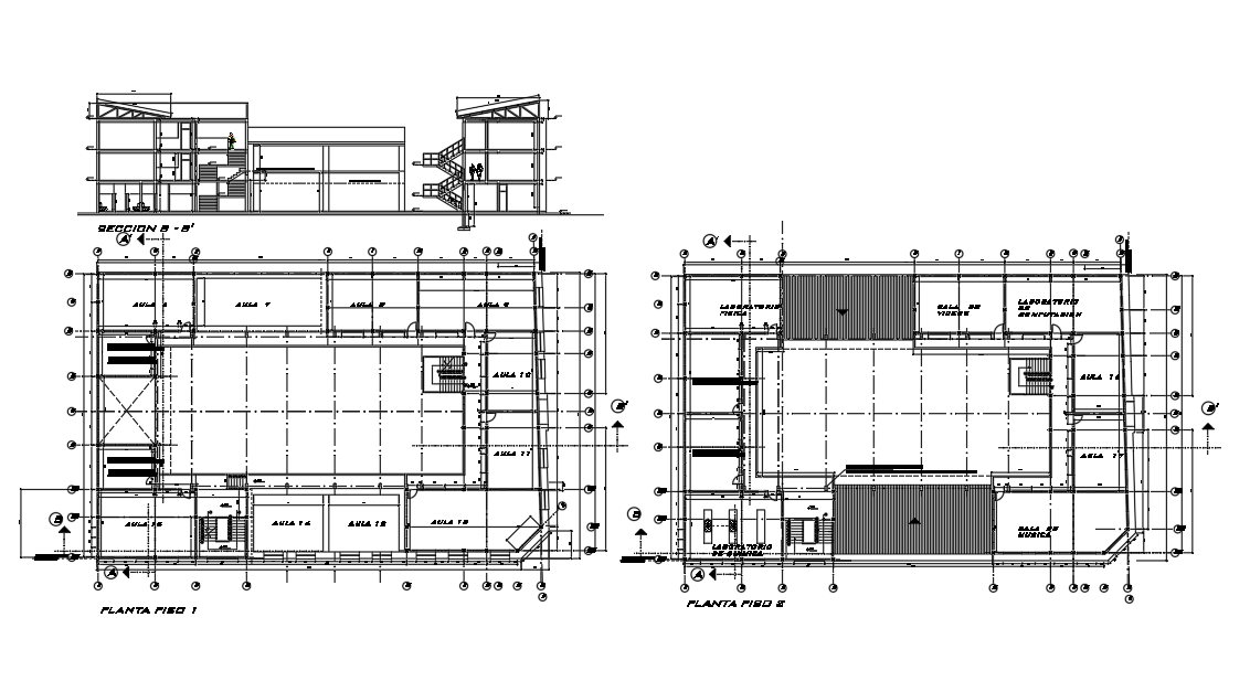 Structural plan and section plan detail dwg file, including section line detail, dimension detail, naming detail, section B-B’ detail, leveling detail, etc.