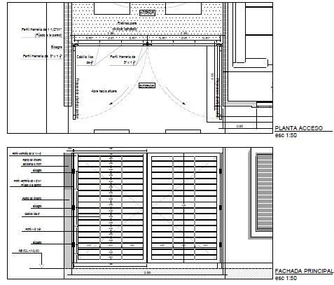 Consiste en un portón de rejas ideal para viviendas. el mismo contiene medidas y detalles de instalación. se ofrece en archivo*.jpeg.