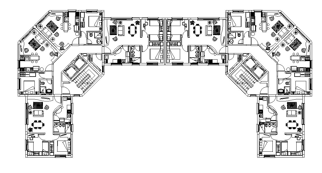 Residential building concept dwg file, top view plan concept,furniture detailing, rooms, beds, kitchen details