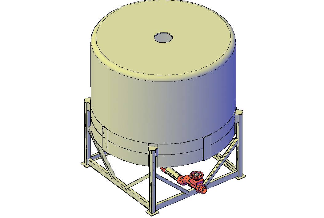 Waste water holding tank 3d detail, 3d elevation view of a storage, front elevation in auto cad format