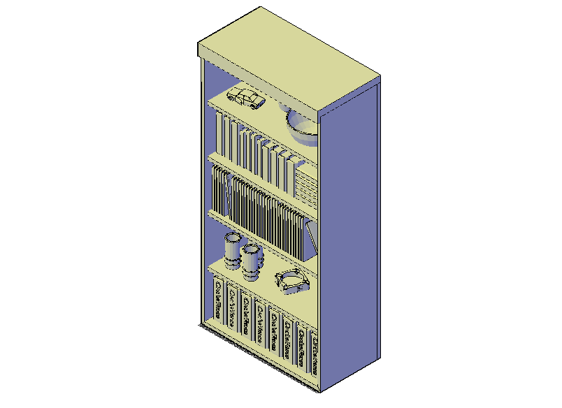 Bookcase furniture with books , here there is 3d detail and elevation of a book shelf with books in auto cad format