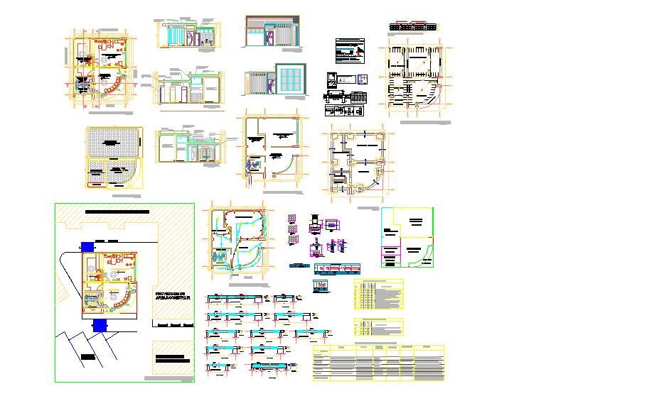 Additional sheets display electrical routing, plumbing lines, mechanical system allocation, furniture layout, and sectional details for better construction understanding. The ground layout presents parking alignment, access driveway, ramp position, and external landscape buffer. The technical legend, schedule tables, fixture representation chart, and material annotations help users implement the design accurately. This complete health care plan is ideal for architects, engineers, and project designers seeking ready-to-use professional drawings for medical buildings, clinics, or community hospitals. It supports fast workflow, clear presentation, and precise execution with comprehensive detailing suitable for actual site development.
