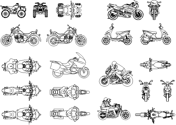 Motor bike 3 D detail dwg file, with tractor detail, Jupiter detail, activa detail, etc.