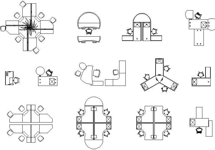 Plan office detail dwg file, with chair and table detail, shaft detail, triangle table detail, etc.