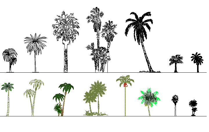Plant tree detail dwg file, including coconut tree detail, small and long length tree detail, etc.