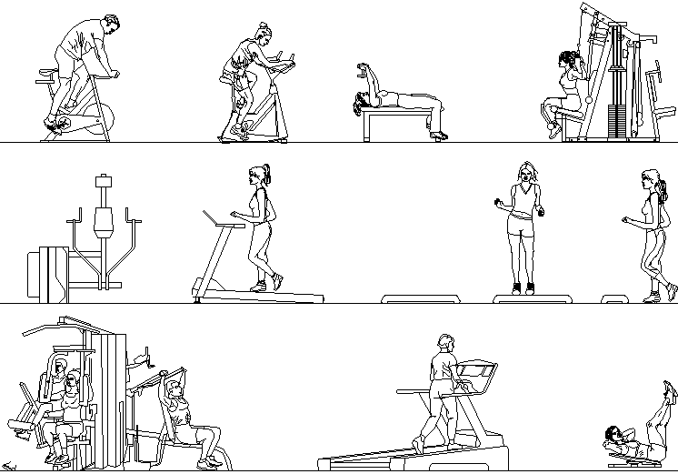 People at the gym detail dwg file, including cycling machine detail, fitness equipment detail, etc.
