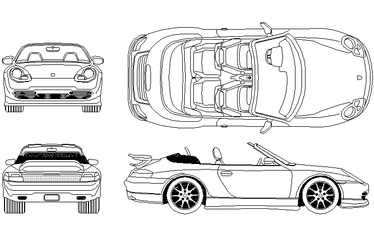 1999 model car detail dwg file, with front view detail, left view detail, right view detail, back view detail, etc.