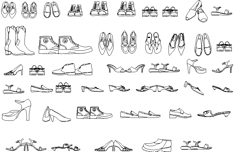 Shoes detail dwg file, including girls and boys sandal detail, etc.