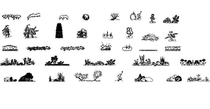 Shrubs elevation detail dwg file, including different types of plant detail, etc.