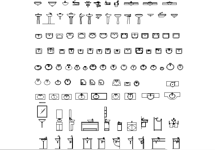 Sink plan, elevation and section detail dwg file, with tabletop sink, round, rectangle, square different shape detail, etc.