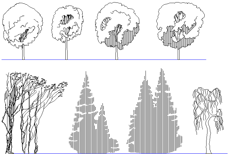 Skating tree elevation detail dwg file, including different tree detail, etc.
