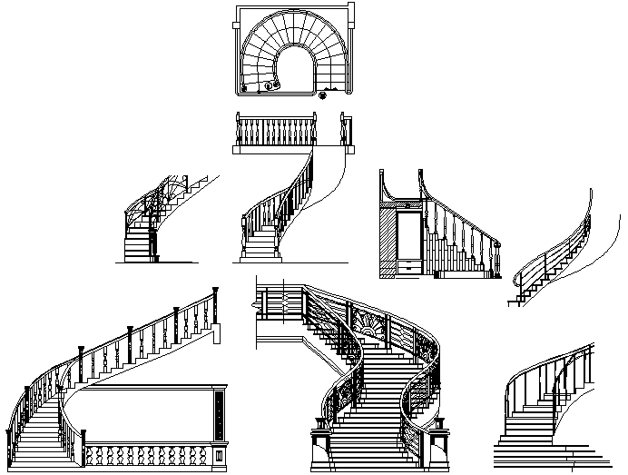 Stair plan and elevation detail dwg file, with reeling architect design detail, different design of stair detail, etc.