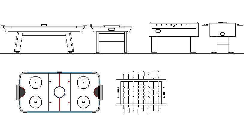 Table football and air hockey detail dwg file, with plan and elevation detail, etc.