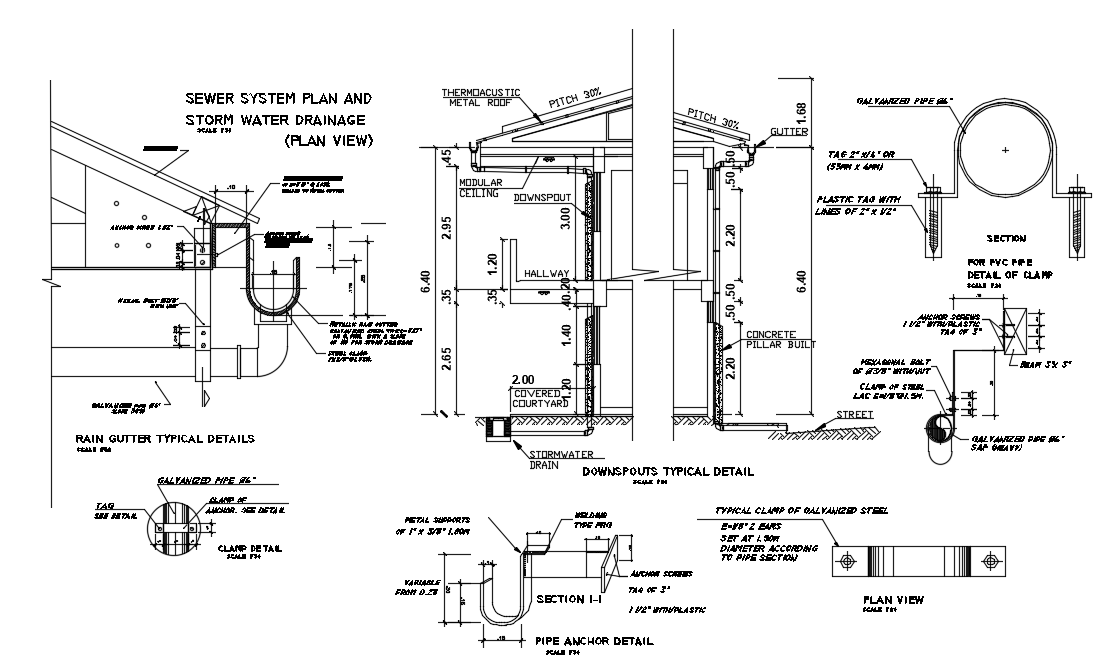 Pluvial Drainage of School layout plan dwg file The architecture layout plan along of furniture detailing in autocad format.