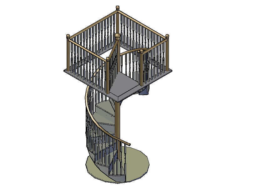 Traditional construction of a spiral staircase, front elevation in 3d spiral staircase