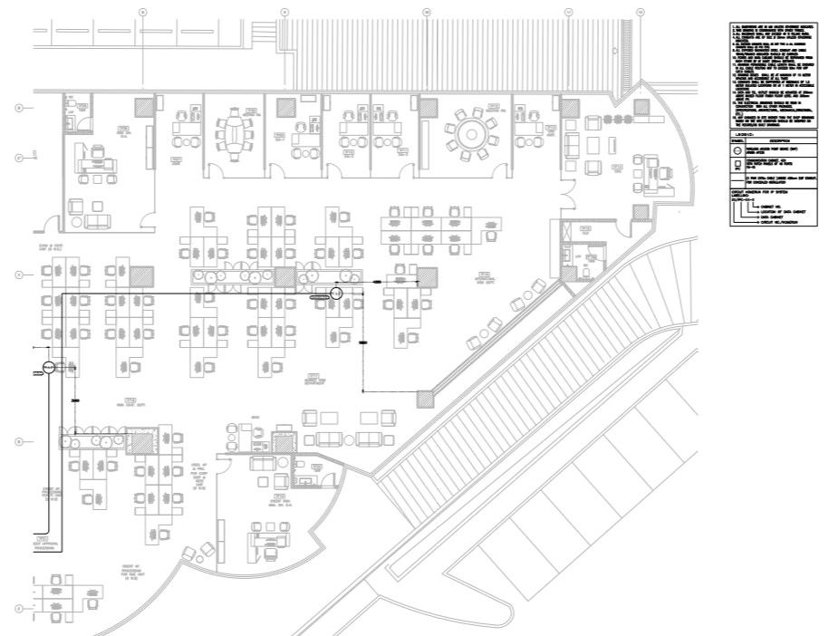 Corporate building plan detail view of a wireless access point. Corporate building wireless access point layout plan detail view and design layout view detail with specification detail, dimensions detail, centerline view etc.