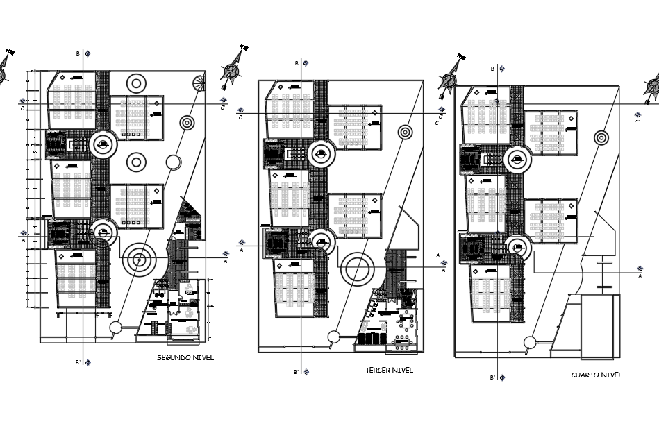 University plan detail dwg file, north direction plan detail, section line detail, furniture detail with chair and table detail, etc.