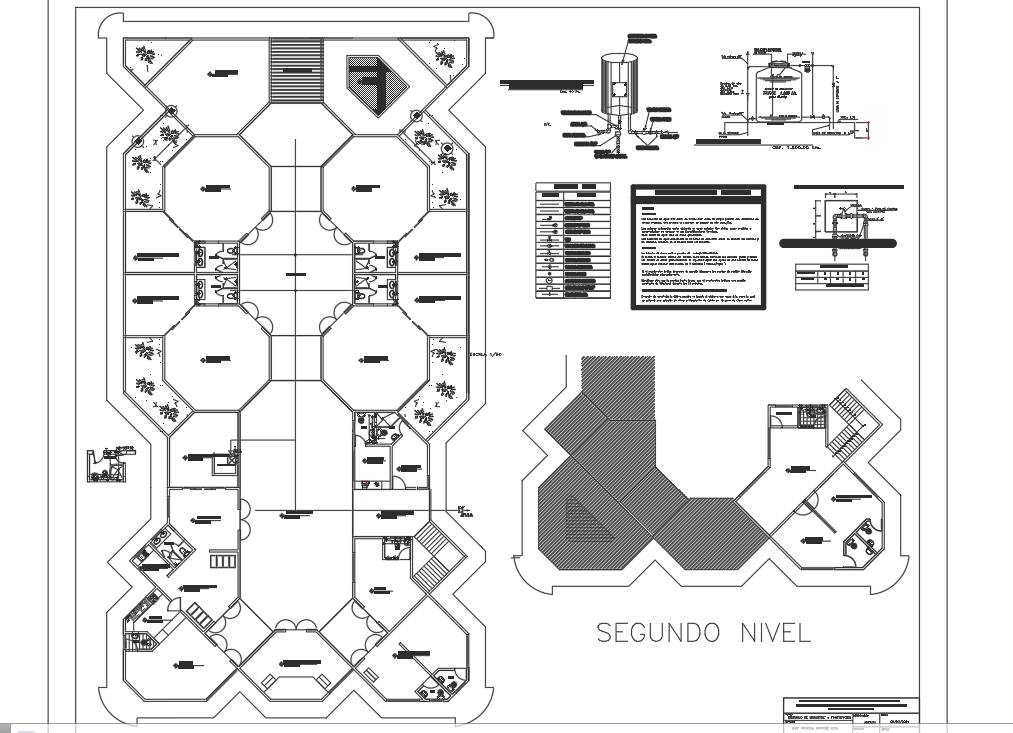 Tank elevation detail dwg file, including dimension detail, toilet plan detail, landscaping detail with tree and plant detail, etc.