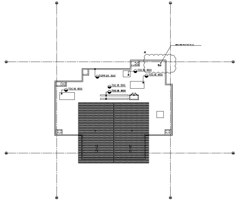 Roof floor plan with detail of water supply system. With the detail of Diameter and size of of pipe and tank. Detail plan with dimensions, levels.