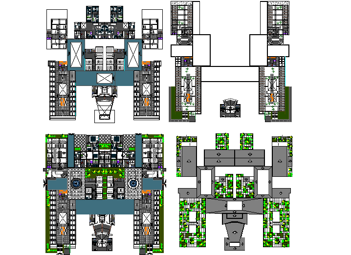 Shopping office complex elevation detail dwg file, with landscaping detail with tree and plant detail, cut out detail, fountain detail, ramp detail, etc.