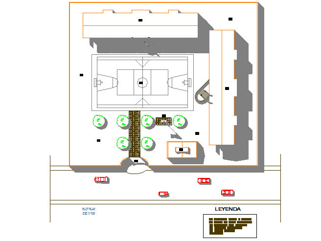 Layout plot detail dwg file, including road line detail, landscaping detail with tree detail, game zone detail, etc.